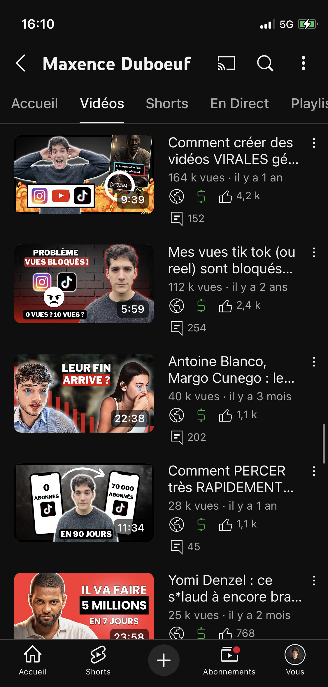 Plusieurs de mes vidéos ont fait des dizaines voire centaines de milliers de vues sur chacune de mes chaînes :