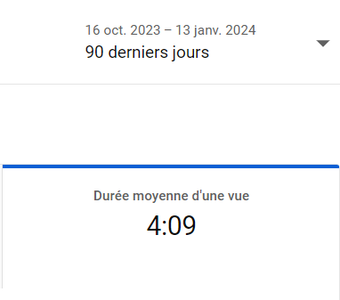 4mn09, c'est la durée que passe en moyenne un spectateur sur mes vidéos YouTube sur ces 90 derniers jours :